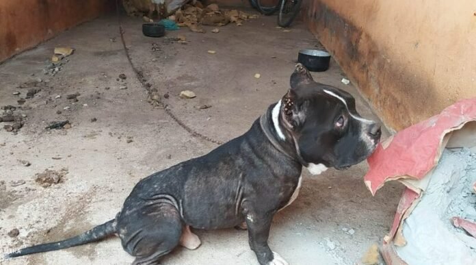 Um cachorro da raça American Bullies (fotos e vídeos) foi resgatado no bairro Matadouro, na manhã dessa sexta-feira (20). O animal foi encontrado enquanto estava sendo realizado cumprimento de mandado de busca e apreensão.